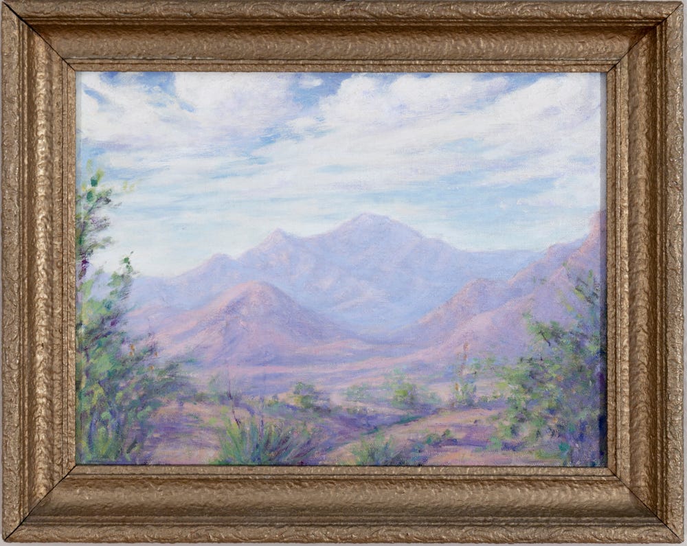Effie’s time in the Los Angeles area, while her son attended the Harvard School, provided her with about four years of sporadic training in California Impressionism, which led to her deciding to dispense with a great deal of her previous conception of landscape painting and come up with her amalgam of techniques to paint successfully in Arizona’s brilliant light and capture the vast distances, the clouds and especially the light itself. She took what she felt was applicable from her recent studies with these California Impressionist masters and, on advice from her Pasadena mentor Jean Mannheim, went back to her desert home at Pearce in 1917 to work out her artistic approach.