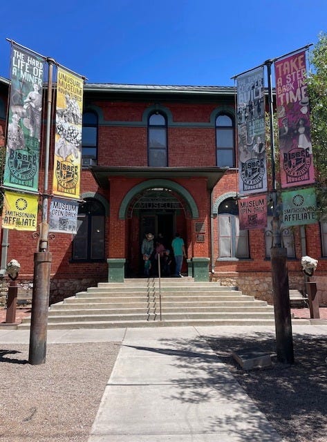 Once you get to Bisbee, the Bisbee Mining & Historical Museum is super easy to find. In fact, you can’t miss it! It’s at 5 Copper Queen Plaza, directly in front of the glorious old Copper Queen Hotel and just steps from the many restaurants, art galleries and antique shops you are sure to enjoy browsing before and after your Museum visit.